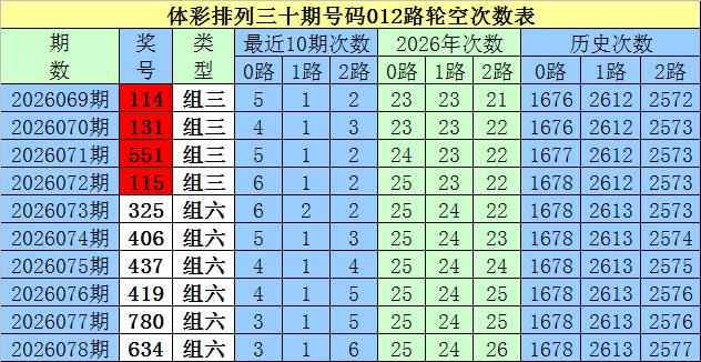 开奖归来:陈列三第2026078期奖号为:634,号码012路比为2:1:0。