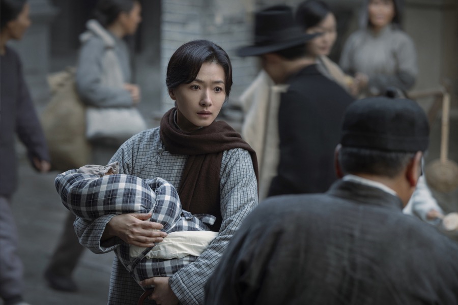 上海城外,万福与小月蓦的再会。一个被国民党捏了壮丁强行流放的火头,一个随密斯助演活报剧的丫鬟,1937年,本该新婚的他们于战火中闹翻、错身,别后天南海北……