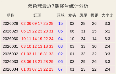 上期双色球的开奖号码中,龙头凤尾组合为01+23,极距为22,大小比为2:4。
