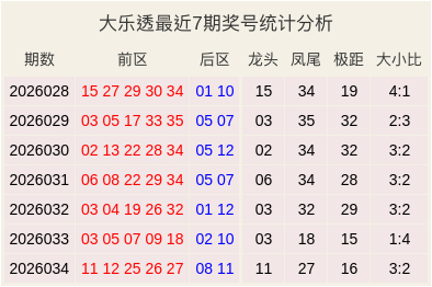 大乐透最近7期奖号和数据分析表