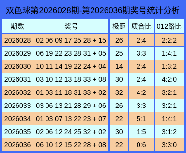 上期奖号极距为22,开出2枚重号06,12,质合比为0:6,邻孤传为0:4:2,蓝球开出合数号码:08。