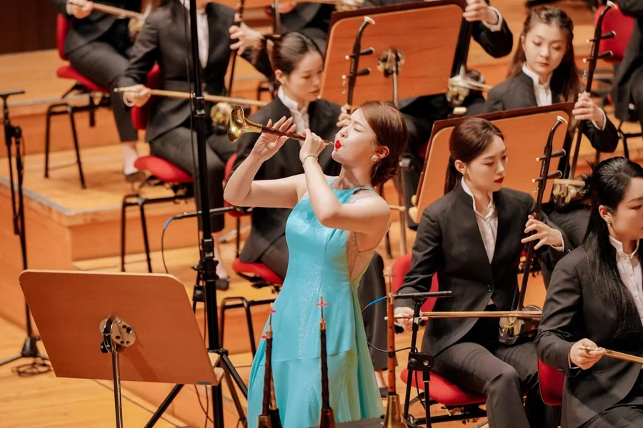 紧随自后,环球首演的唢呐协奏曲《无问中西》引爆全场。后生唢呐演奏家刘雯雯倾情独奏,气味能伸能缩,高音穿云裂帛,低音千里厚绵长,唐突演绎颠簸全场。粗犷唢呐与民族乐队相互竞奏、和会对话,演绎不同时髦兼容共生的魔力。臧婷解读谈:“我想借这首作品抒发跨文化的人命大叫,在传统与现代、有调性与无调性的碰撞中,展现江南怒放信守、吞并革命的气度。”