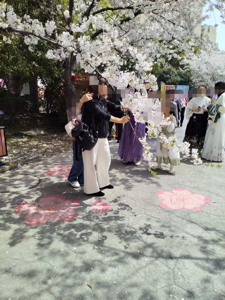 今宇宙午,记者探访时看到,在浦东新区高东镇樱花节现场,绵延数百米的樱花大路上,粉白、淡红的花瓣如云霞般缀满枝端,微风拂过,花瓣簌簌飘落,引得巨额市民旅客安身打卡,陷落在这春日罢休的纵欲景致之中。不外,部分旅客为了拍摄“氛围感”短视频、唯好意思像片,当作失当,对樱花树酿成了径直伤害。在一处东说念主流量较大的樱花林,几名身着汉服的年青东说念主正围着一棵老樱花树“创作”。其中一东说念主双手牢牢抱住树干,躯壳往还发力摇晃,蓝本安逸的树干剧烈摇荡,枝端的花瓣如雪片般大面积飘落,在地上快速积起薄薄一层。傍边的同伴则举入辖下手机,从各个角度拍摄“花瓣飞雪”的殊效,嘴里还按捺喊着“再摇重心,成果更棒!”