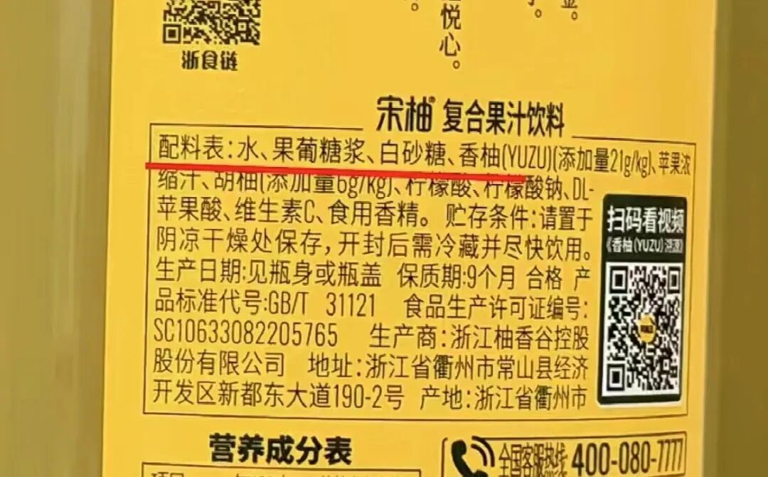 据都鲁晚报轮廓报谈,近日,有破钞者发现,有名品牌“宋柚”,柚汁占比仅有2.7%,主要的要素其实是糖水,激发公论存眷。
